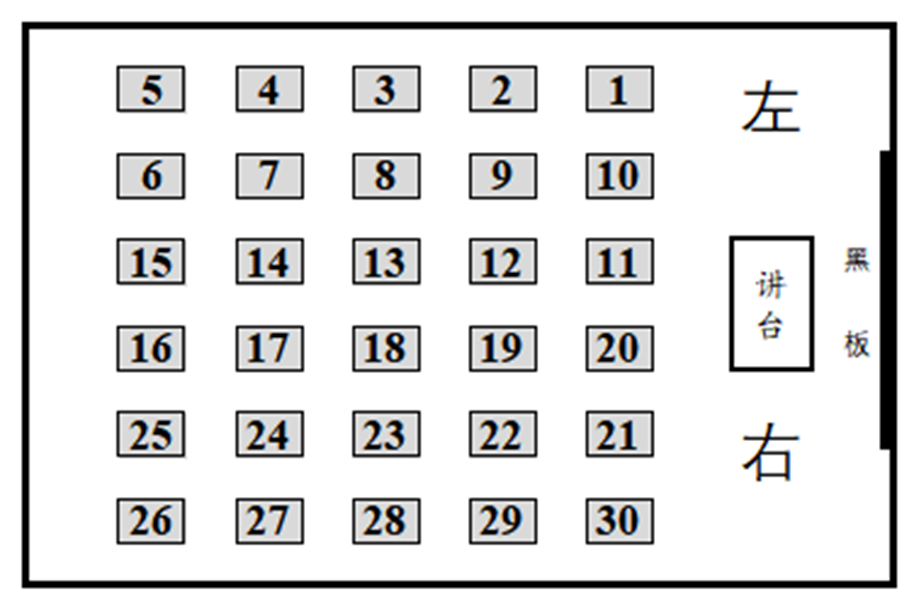 1.各学院按照目前教室使用的分配情况,安排本院学生在周五12月19日上午10点前将本学院使用的有活动桌椅的教室进行整理布置。教室内按照考生单人单桌、左右间距80CM以上的原则,以“五行六列”的方式(每行6张、共5行)摆放30张活动桌椅。大教室(88座)多余的桌椅整齐的摆放在教室的后方(可以叠加摆放),小教室(55座)多余的桌椅整齐的摆放在教室外走廊前后门的中间(可以叠加摆放),不能影响前后门的出入。